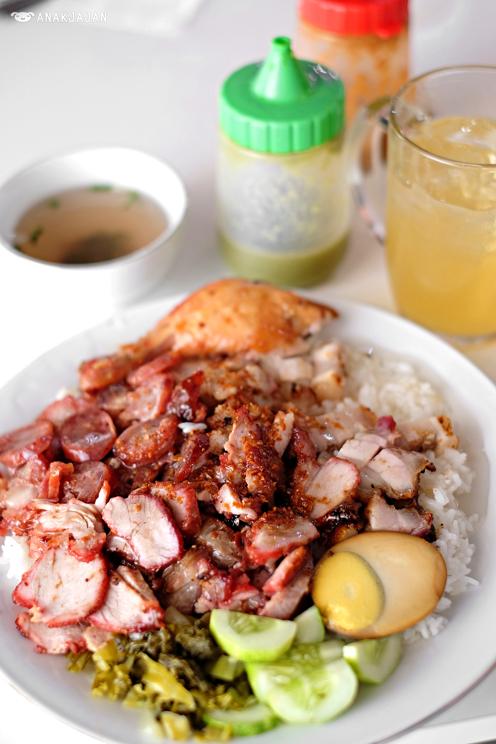 A popular mixed rice dish, Nasi Campur Akwang features a variety of roasted pork, sausage, and egg, all served over fragrant rice. It's known for its rich flavors and generous portions.